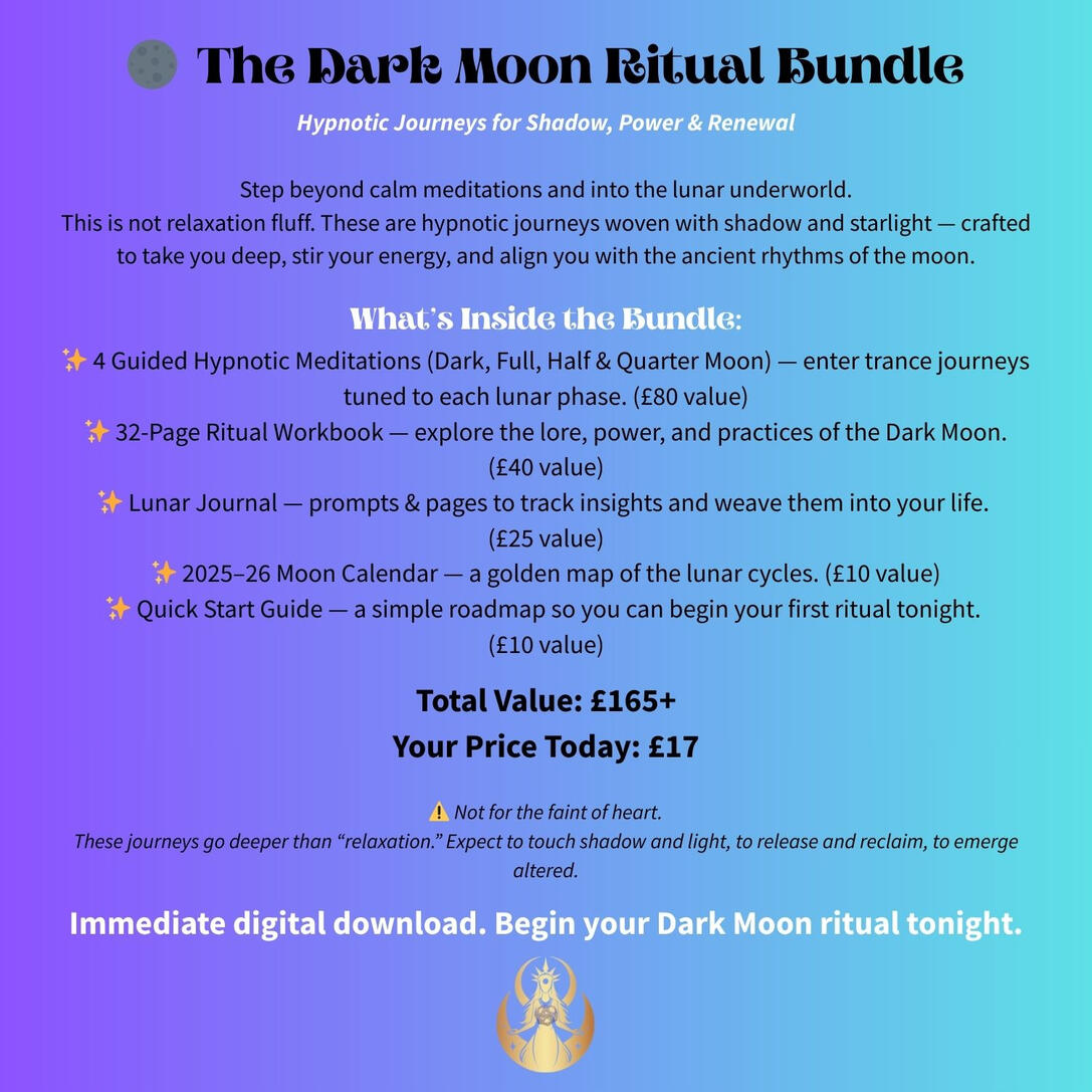 This is not relaxation fluff. These are hypnotic journeys woven with shadow and starlight — crafted to take you deep, stir your energy, and align you with the ancient rhythms of the moon.What’s Inside the Bundle: